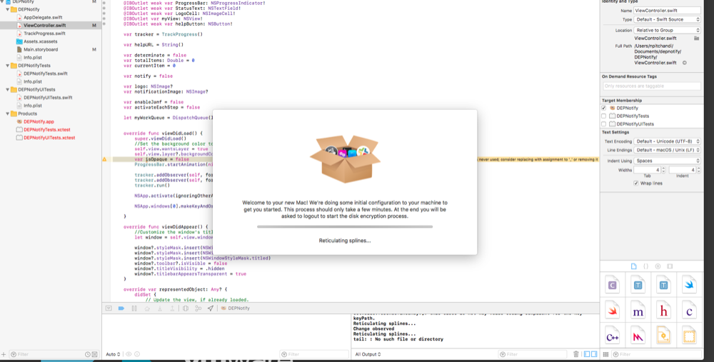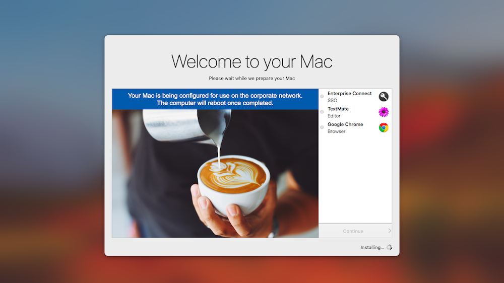 A setup/splash screen for DEP and user-initiated Jamf Pro enrollments. Detailed documentation highlights how to work with the application in Xcode to customize it for your organization's needs.