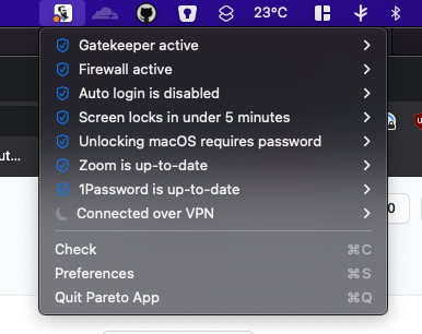 Customizable menubar that checks for hardware status, management framework status, and other handy information.