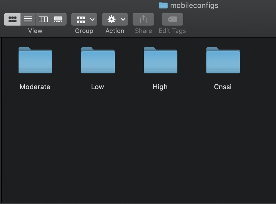 profile_generator.py, no matter which baseline you are targeting, the outputted.mobileconfigfiles are put into a folder namedmobileconfigs. This means that, when running the script against multiple baselines, the.mobileconfigfiles are combined into a single directory.When running